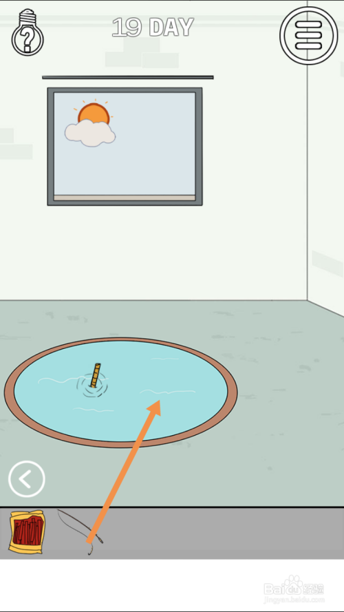 获得鱼竿后,将鱼竿拖动到水面上就过关了。