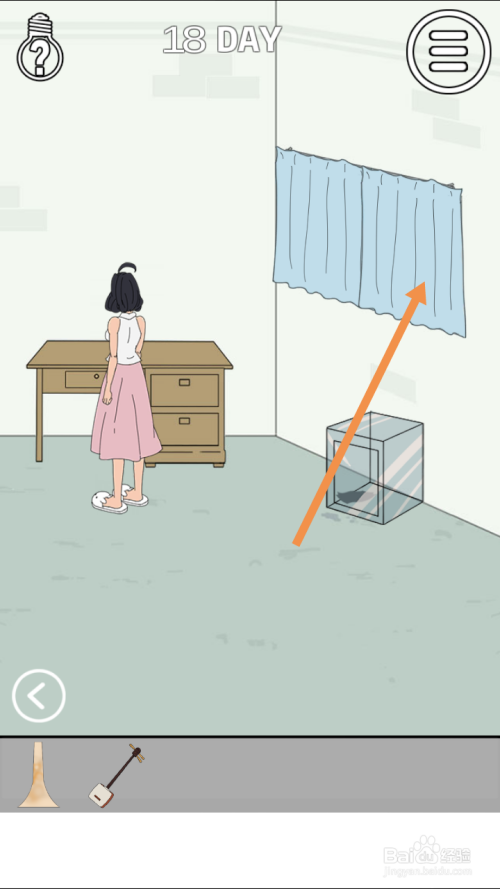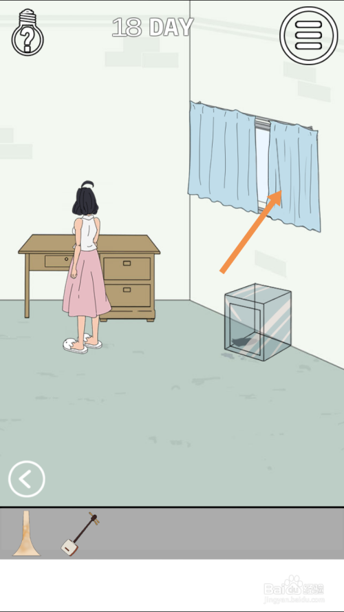 在右边房间里,点击窗帘,然后点击下图中箭头标注的位置。