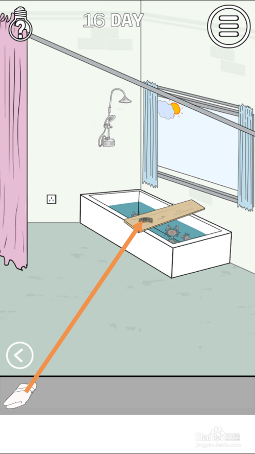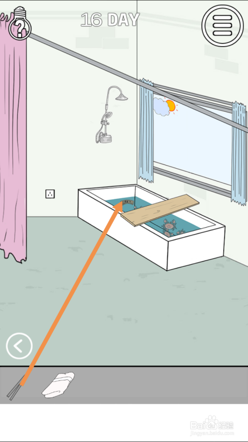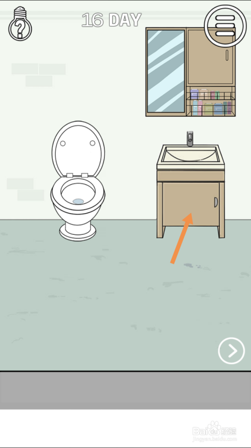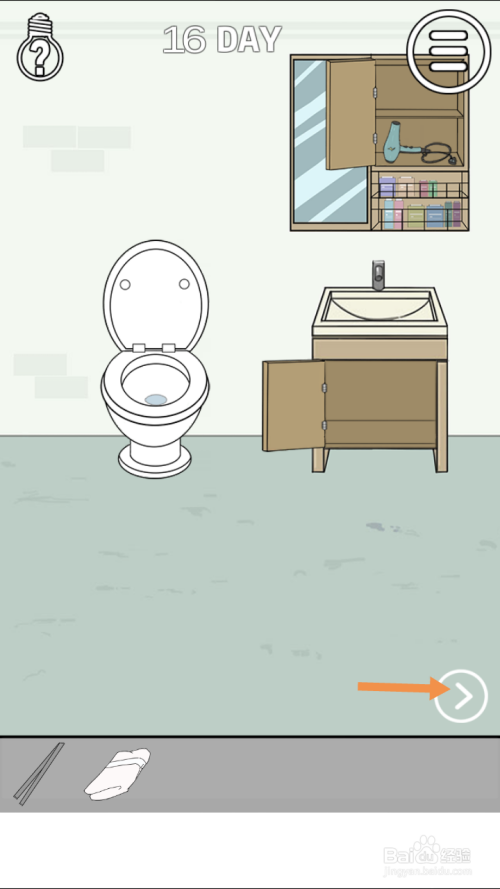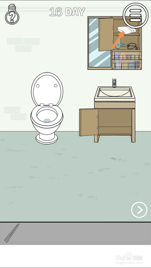 获得毛巾后,点击标的目的右箭头,进入右边的房间。