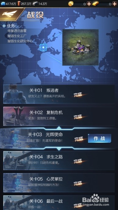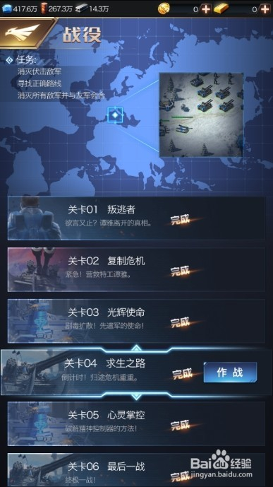 覆灭沿路的仇敌后,当作功和年夜军队回合,完当作使命,第四关当作功经由过程