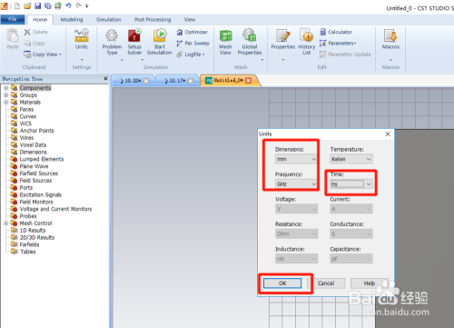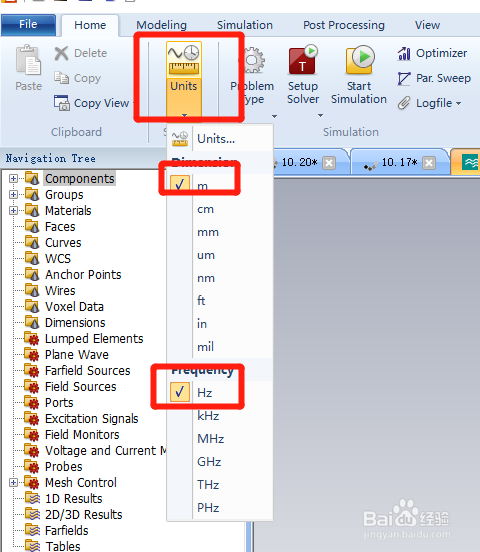 然后,点击Simulation中的频率、布景、鸿沟前提,设置今后才可以进行仿真,因为每个布局在分歧的鸿沟情况中,仿真的成果是纷歧样的