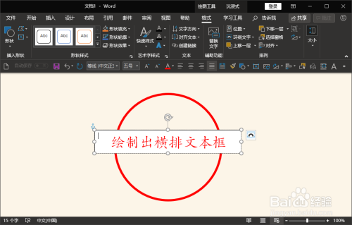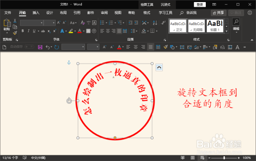 接下来,我们将转换后的文本框放置到之前绘制出的正圆里面的合适位置,并将文本框扭转合适的角度。