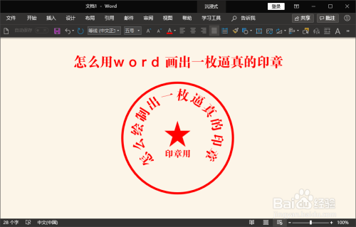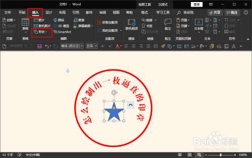 至此,在word中绘制一枚传神的印章根基上已经完当作了,若有需要还可以再添加一些其他元素,好比在正五角星下面再添加需要文字申明等。