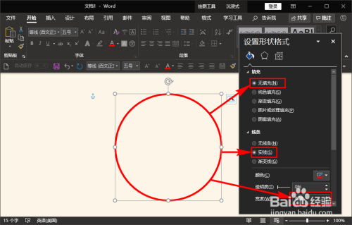 将正圆的外形格局设置为:填充为无填充,线条为实线,线条宽度建议为3至5磅摆布即可。