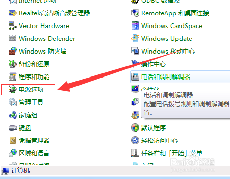 点击节制面板后,会进入到节制面板的界面,从里面找到电源选项,点击电源选项。