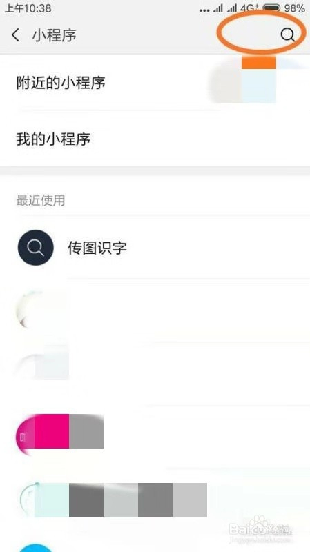 打开小法式后,若是没有利用过“传图识字”,可以点击“放年夜镜”进行搜刮“传图识字”进行添加,如图所示: