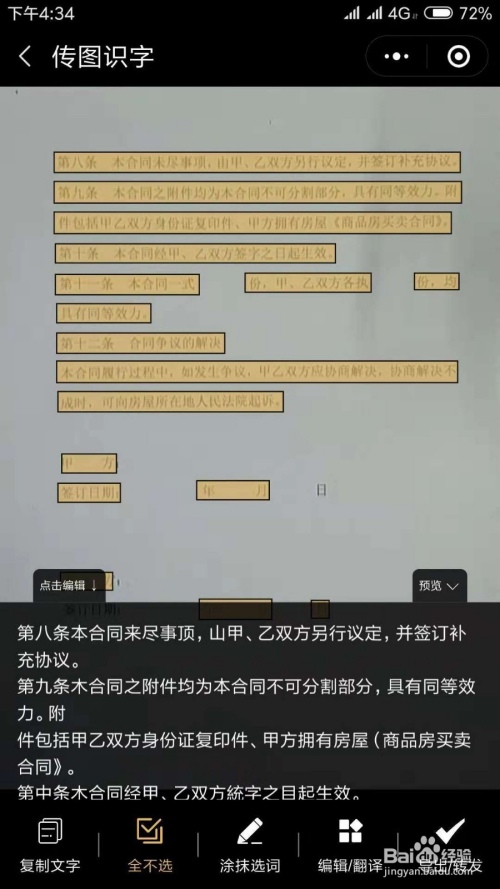 可点“全选”或点文字上的框框进行选择所需文字,如图所示:
