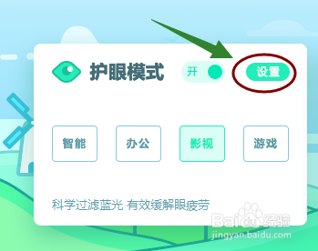 本家儿界面左面有开关设按钮,处于打开状况就是打开护眼模式,不合用护眼模式则选择封闭。