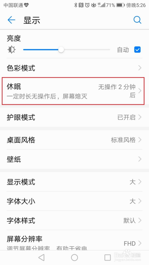 - 手机休眠设置一般在显示设置中完当作,也有部门手机在电源设置中;