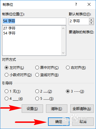 仍是点击“起头”菜单,选择“段落”选项,再在对话框中选择“制表位”选项,接着在“制表位”对话框中输入“54”,仍是选择“3-----”这种类型的指导符,再依次点击“设置”和“确定”按钮,最后返回到文本框时,按一下键盘上的“Tab”键,如许残剩的剪切线就添加好啦!如图所示: