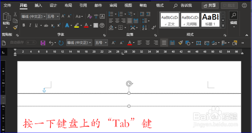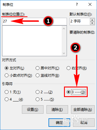 在对话框的制表位位置下方的方框中我们输入“27”,然后在“指导符”下方我们选择“3-----”这种类型,再依次点击“设置”和“确认”按钮。返回文本框后,我们再点击一下键盘上的“Tab”键,这时文档中就呈现了半截剪切线。如图所示:
