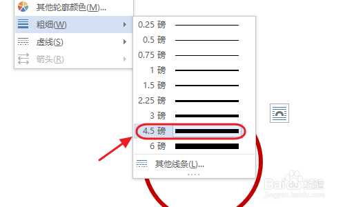 接下来我们还需要给正圆的轮廓线条稍加点窜,因为印章的外圆线条遍及比力粗,在外形轮廓下面的“粗细”里自界说线条的数值即可,好比小编选择了4.5磅;