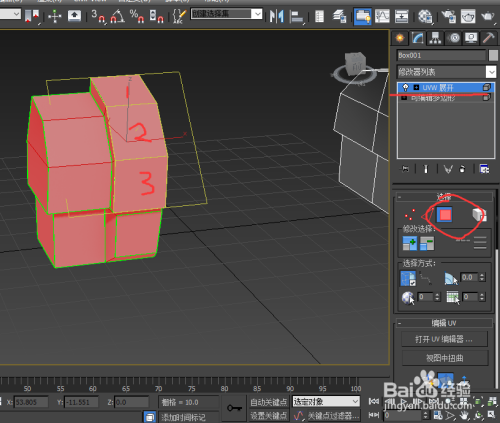 打开uvw睁开 选择面模式 选摘要分隔的面123为例