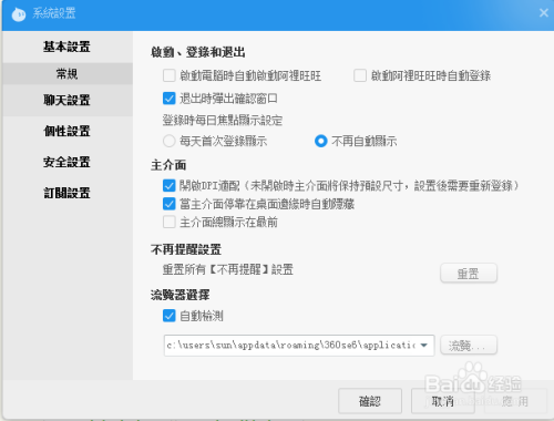阿里旺旺系统设置对话框主动打开;
