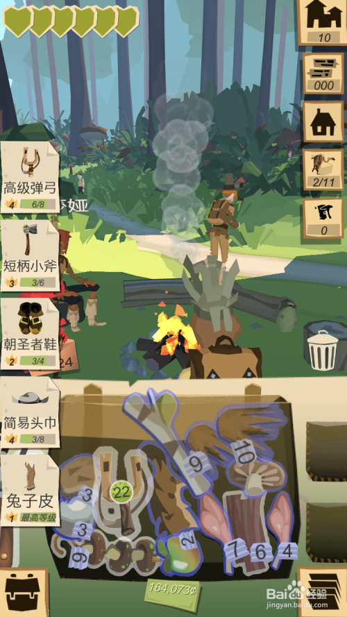 常用的弹弓等东西,可以放在衣服挂钩上。有挂钩的衣服可以用图纸做出,也可以用瓶盖兑换永远的不磨损的衣服。