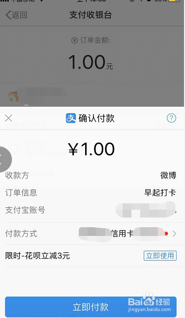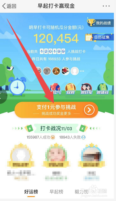 点击介入挑战之后,你需要付出一元,有付出宝和微信两种付出体例。