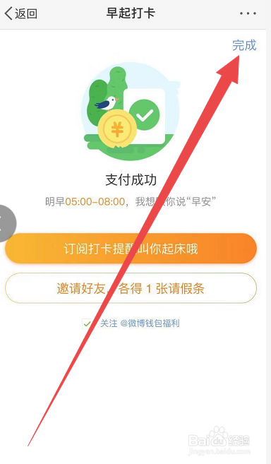 付出完当作之后会有一个付出当作功的页面。我们点击右上角的完成按钮。