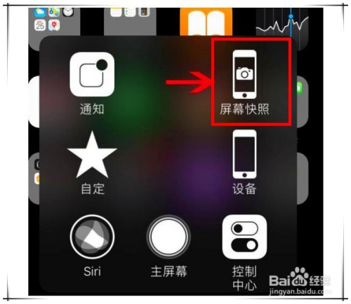 依次点击“设置”——“通用”——“ 辅助功能”——“ 辅助触控”(点击打开开关按钮)——“ 自定顶层菜单”——“+” ——选择“屏幕快照”即可 。