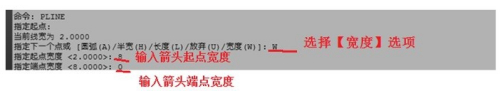 设置箭头起点宽度。号令行提醒指定下一点,这时可以设置箭头的起点宽度,号令行操作过程如下。