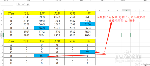 进入选择性粘贴选择框后,单击运算下方的“减”,然后点击确定