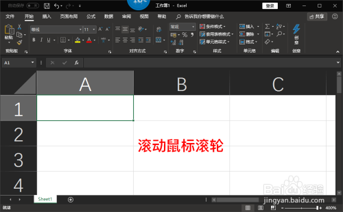 打开电脑后,开启我们的excel软件,在软件中我们滚动本身的鼠标滚轮,查看当前的软件在滚动鼠标滚轮时,表格是在上下滚动仍是在变年夜变小。