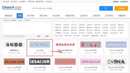 打开网页搜刮想要的字体,并下载。(ps:这里保举站长素材网站,里面下载字体很便利)