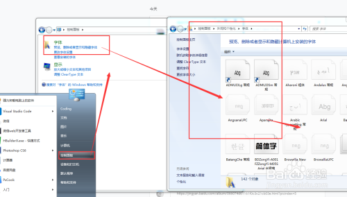 点击‘节制面板 -- 搜刮‘字体文件夹’ -- 打开字体文件夹