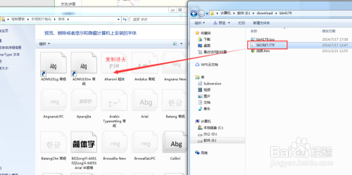 将下载的字体文件复制到‘字体’文件夹中,