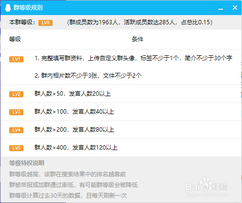 点击当前的群品级,即可查看具体的QQ群品级的法则,从而知道如何确定QQ群品级