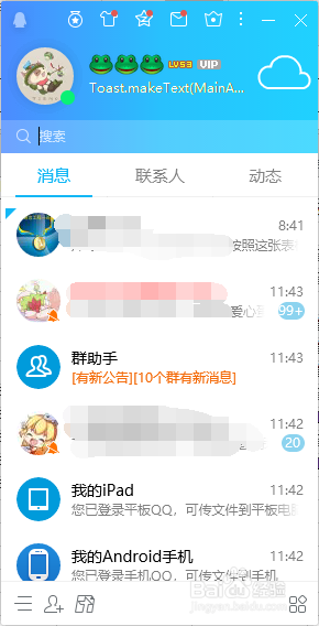 点击群助手,或者群聊按钮,即可看到当前QQ号内所有已经插手的QQ群,双击选择进入一个QQ群