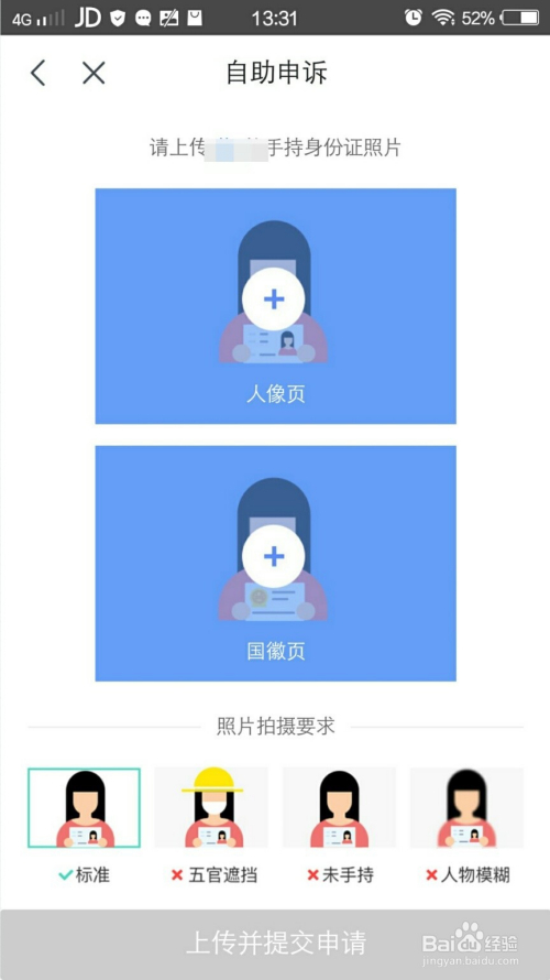按照页面提醒上传、并提交手持身份证,按照提醒一步步操作,待官方核实后,就可以从头进行实名认证了。