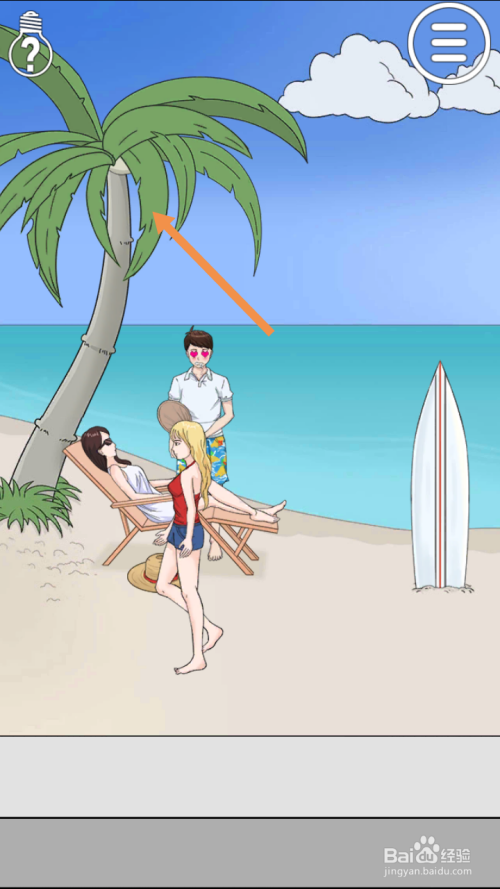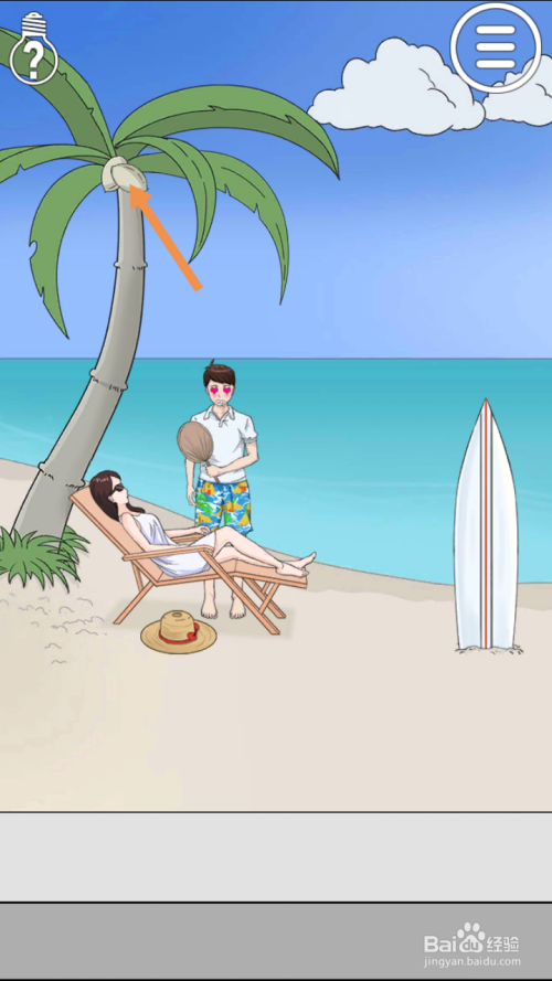 第6关点击椰子树的树叶,然后点击椰子就过关了。