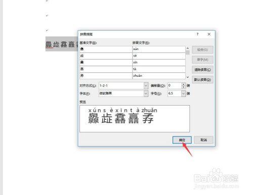 弹出的对话框里,是不是给响应的文字主动注音了呢,这里提醒下,字母是不加拼音的,就像上面封面图那样word是没有注音的,好了,点击确定吧。