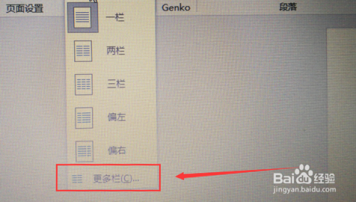 然后我们在“栏”处,选择“更多栏。