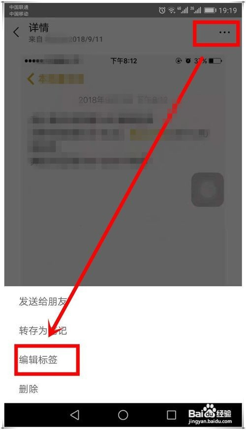 点击保藏项,在打开的详情页面,点击右上角“...”按钮,弹出菜单中选择“编纂标签”。