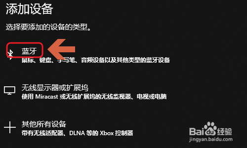再次返回到电脑的蓝牙页面,此次点击“添加蓝牙或其他设备”,在添加设备窗口里点击最上方的蓝牙;