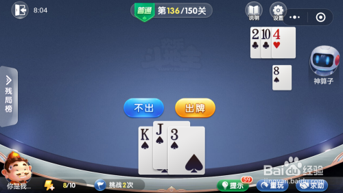 妙算子打出一张4,我打出一张K,接着打出一张3就过关了。