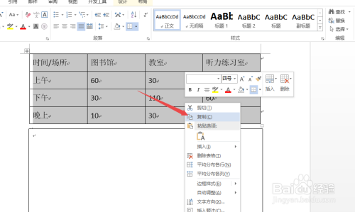 然后选中当前的表格内容,鼠标右击,在呈现的菜单中点击 复制 选项;然后将鼠标移动到下面的文本框中,鼠标右击,在弹出的菜单中点击 保留源格局 。