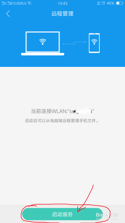 然后点击启动办事,会提醒需要电脑输入地址进行毗连,打开后,然后我们回到电脑进行下步操作。