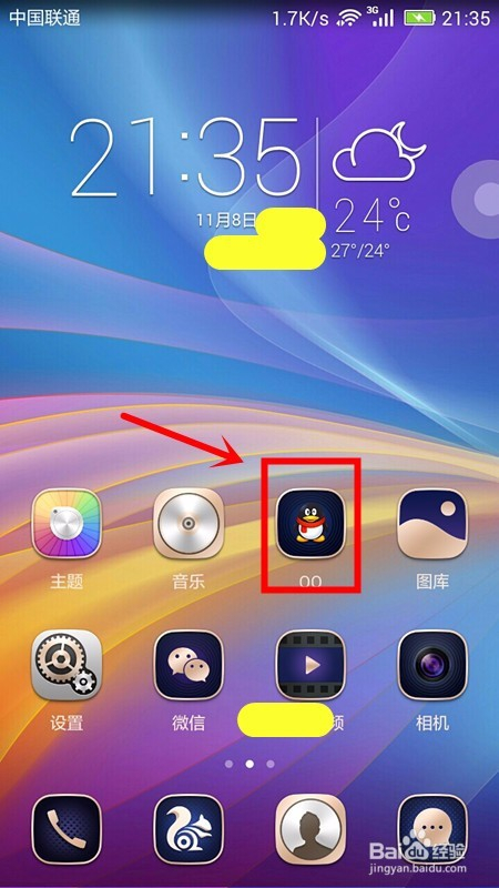 手机上点击QQ应用且登录QQ账号;