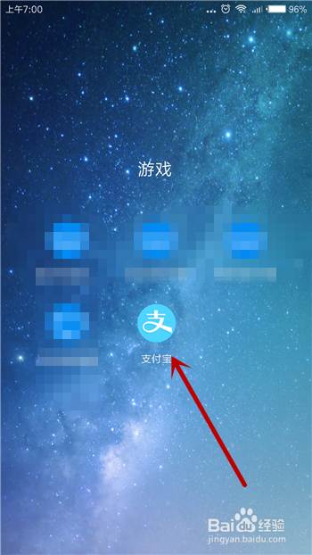 打开手机并找到桌面上的付出宝,点击打开付出宝,如图所示。