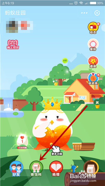 打开蚂蚁庄园应用后可以在底部看到【领饲料】使命,点击打开该使命。