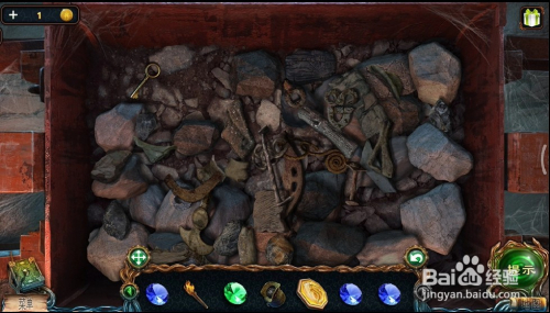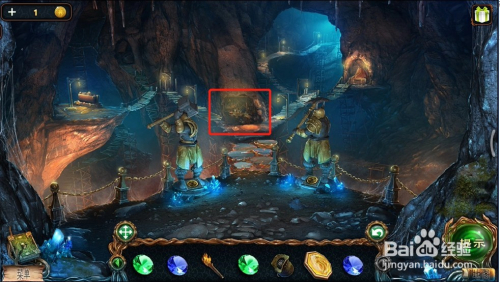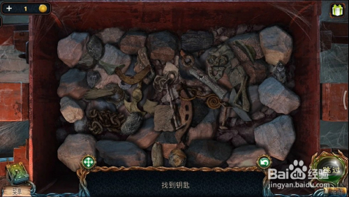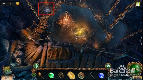 接下往来来往到之前拿铜币的场景,点击图1的位置,完当作小游戏后可以拿到一个火药,火药可以用来炸失落石柱。具体过程参考:密屋逃走绝境系列4迷掉丛林山洞的石柱怎么炸。