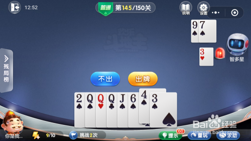 我打出一张J,接着打出三张Q带一张3,然后打出一张2一张6就过关了。