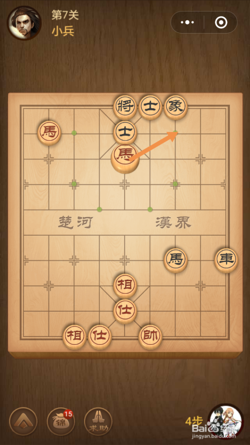 第7关第一步馬移动到下图中箭头标注的位置。