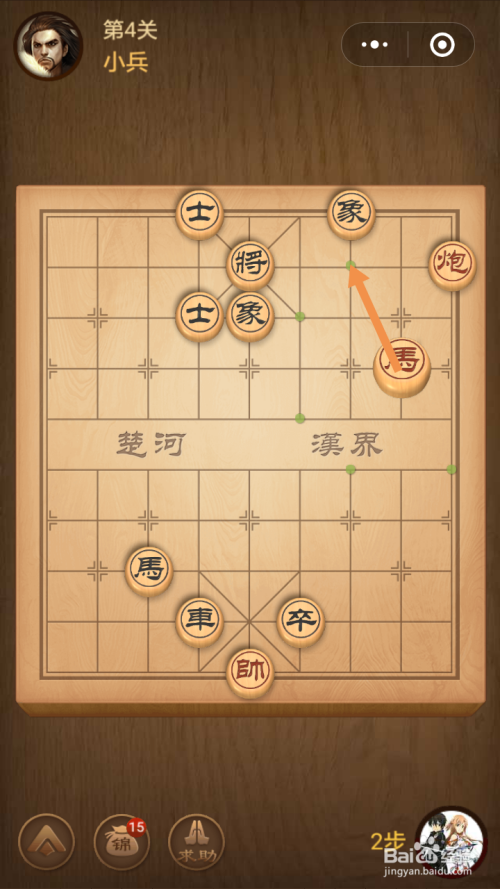 第二步馬移动到下图中箭头标注的位置就过关了。