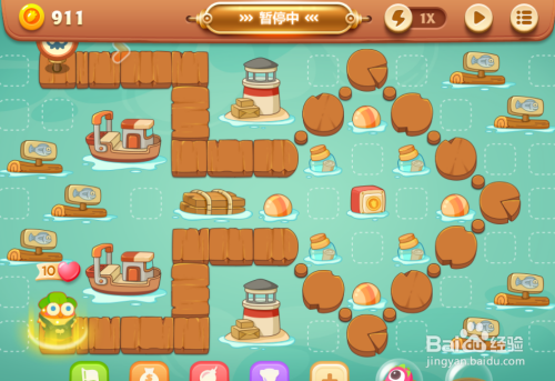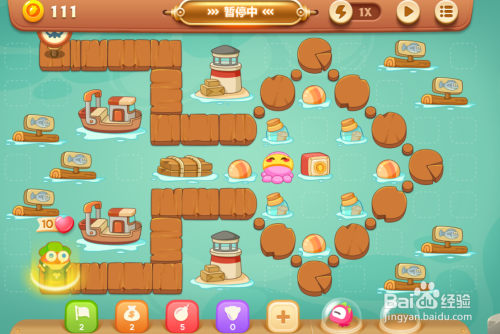 清理障碍物,增添金币数目,然后继续弥补4个章鱼!