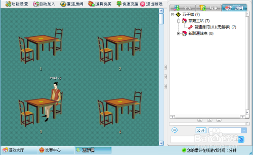 在客户端找到五子棋的游戏,点击进入。选择房间座位做好,即可进入游戏界面