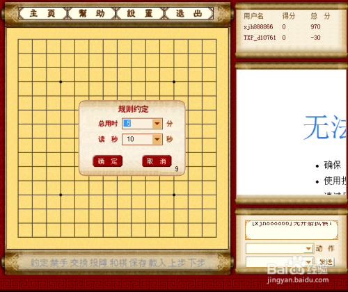进入游戏界面之后,进行筹办工作,设定游戏总用时以及读秒的时候