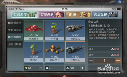 接下来还需要筹办合金钻头,钻头可以在沙石堡以及白树高地等地开箱子获得,庄园低于三级的玩家,只能选择在拱廊街采办,需要800金条。